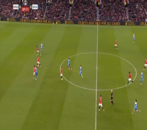 所以在比赛当中,你会看到很多令人无奈的画面,比如在库尼亚接应到右路送出传中的时候,根本没有人去抢落点,让布莱顿后卫轻松解围,而这种进攻确实也不需要布莱顿用主力来应对: