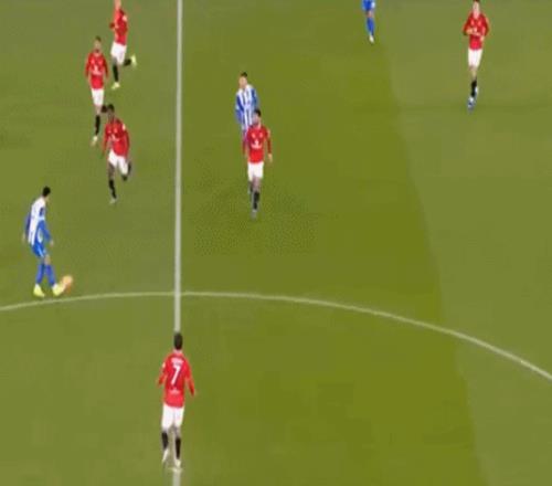 于是当布莱顿选择长传找双前锋的时候,曼联后场就变成了这样: