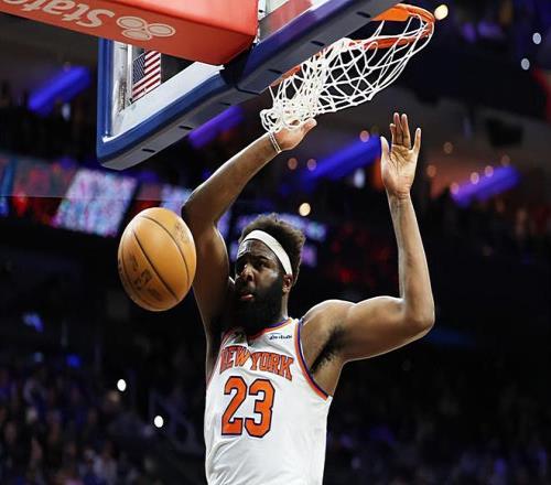 本场比赛中,尼克斯的替补中锋米切尔-罗宾逊(Mitchell Robinson)的表现还是相当突出的。罗宾逊全场出场15分58秒,投篮2中1,罚球8中3,得到了5分9篮板2助攻的数据,还有1次犯规,正负值则是达到了全场第三高的+15。罗宾逊的出场时间并不多,但是他还是展现出了自己全面的才能。罗宾逊在进攻端确实是粗糙了一些,他确实是没有能力得到更多的分数,甚至他在罚球线上的稳定性也是一塌糊涂的。不过罗宾逊在前后场篮板争抢方面的作用依然非常明显,他也是在出场时间非常有限的情况下拿下了大量的前场篮板。不仅如此,罗宾逊在护筐和内线防守方面也是能够起到一些作用的。罗宾逊在攻防两端都还是起到了很好的效果的,他在场上时球队的局面一片大好,这也能够体现在他超高的正负值上。