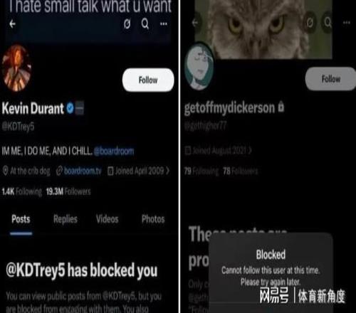 爆料网友坚称该账号属于杜兰特的关键证据在于:杜兰特的大号曾将他拉黑,而这个神秘小号也莫名其妙地对他进行了拉黑操作,这种”让他坚信这就是杜兰特的小号。此外,该账号的背景墙图片,竟是杜兰特此前在大号上发布过的,这进一步加深了他的怀疑。