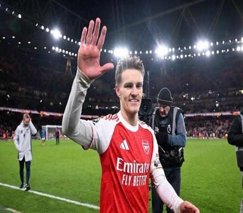 2023年,阿森纳主场迎战曼联,热苏斯补时阶段打进了这粒进球